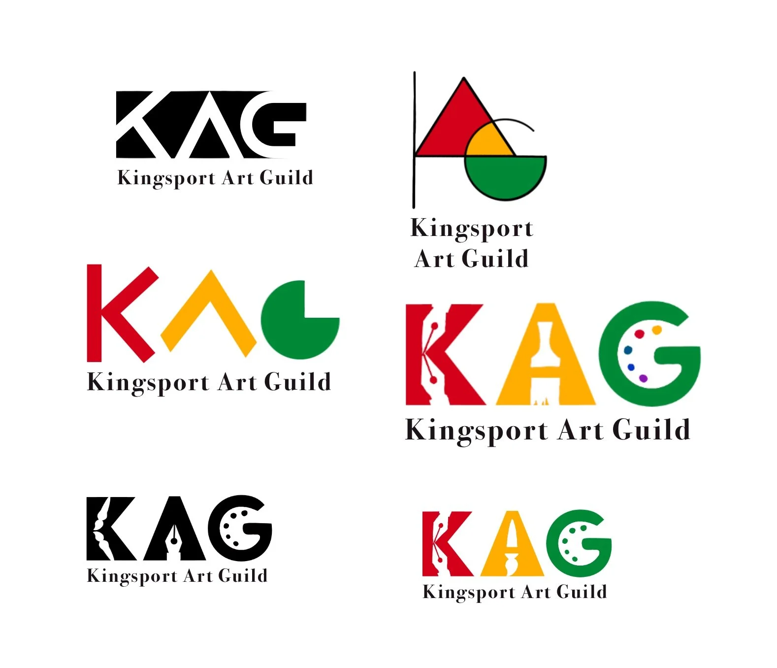 This is a logo concept I designed for the Kingsport Art Guild during my junior year of college. They were looking to update their old logo, which was just their name in a generic typeface, and with no accompanying mark.