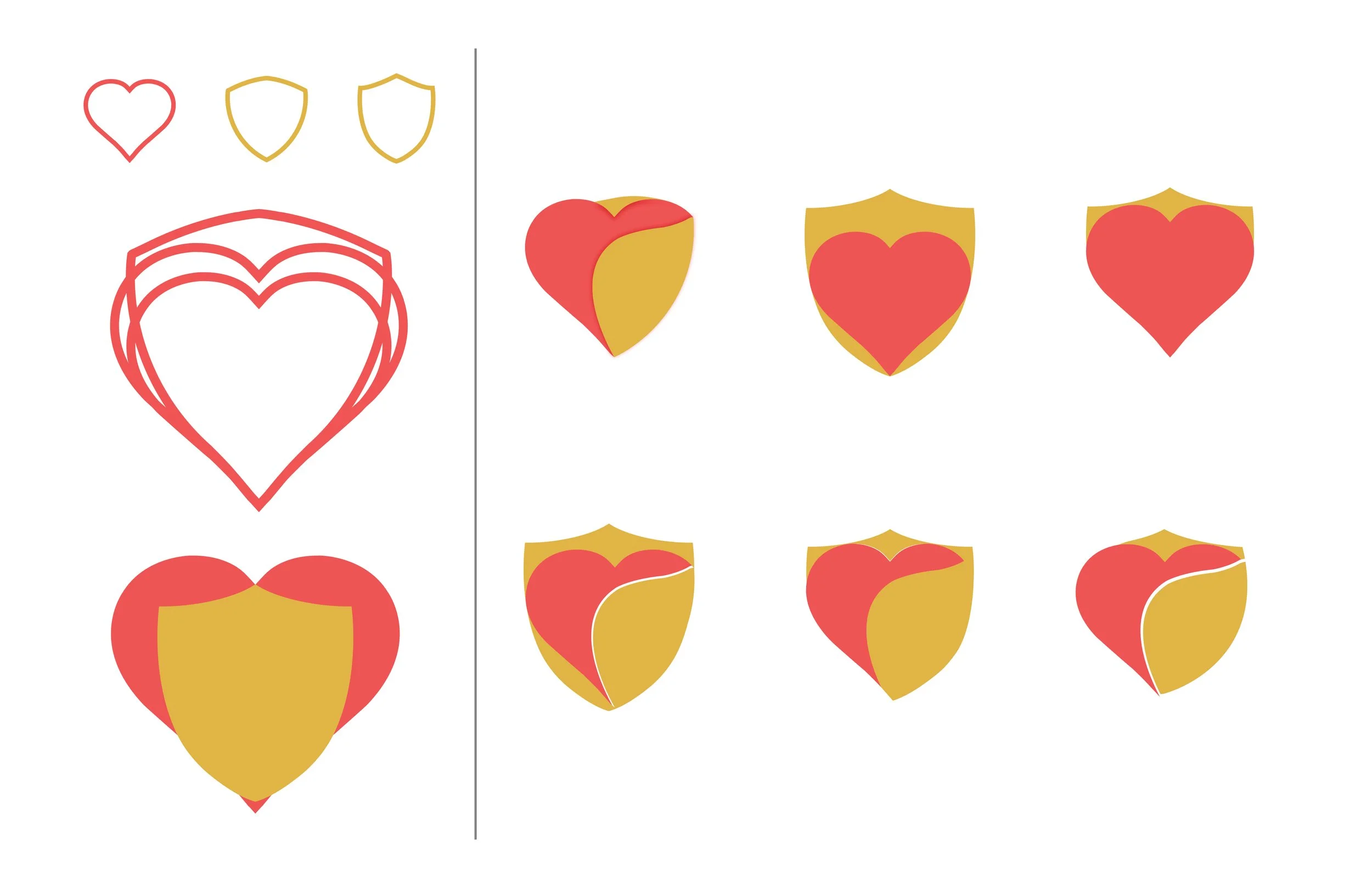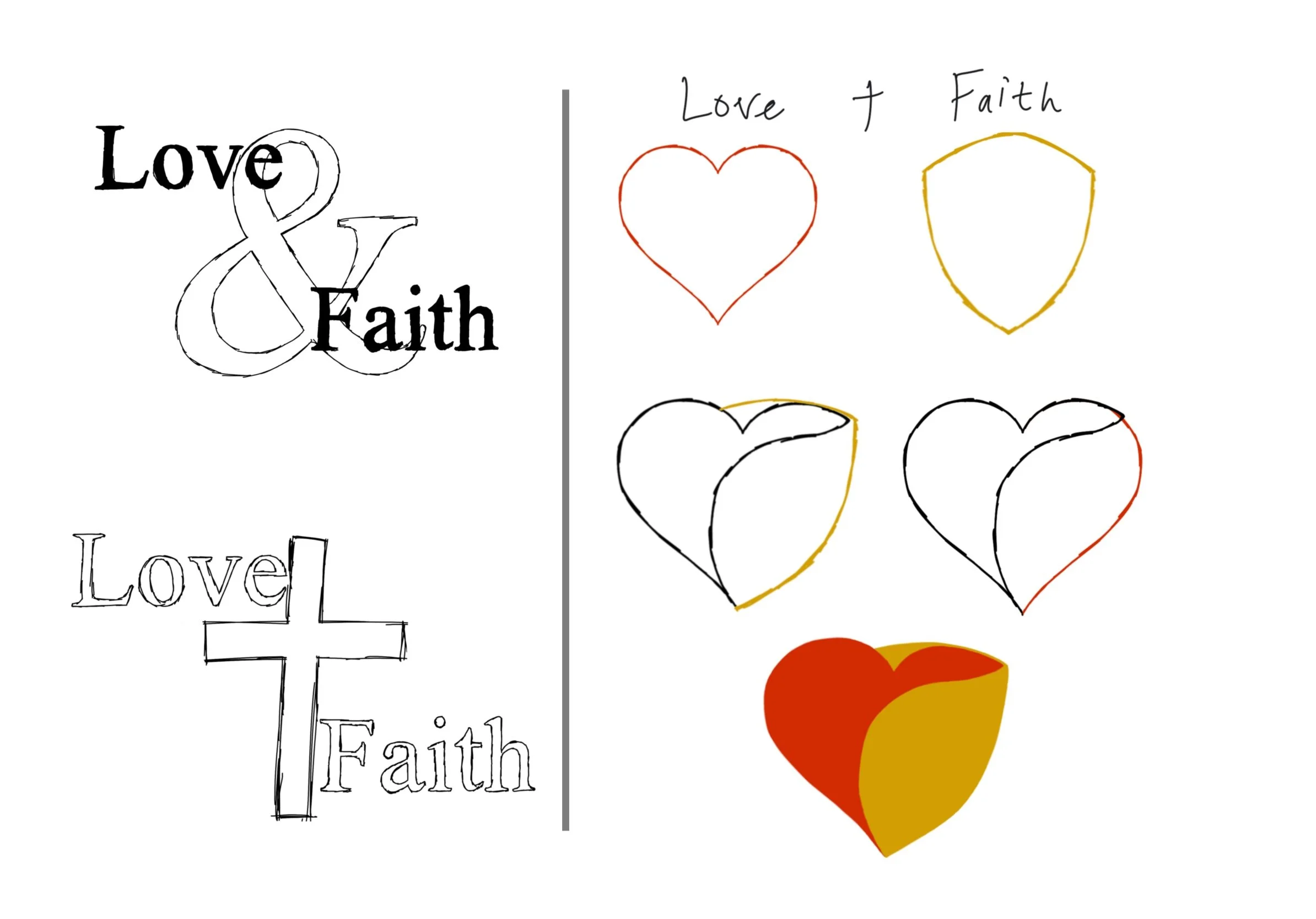 The main icon is comprised of a heart and a shield. The heart and shield are combined to be as one to show their relationship with each another, as well as for simplicity. The shield wraps around the heart to clearly elaborate the nature of faith. The colors reflect warmth, energy, and prosperity. There’s a version with the color green for growth. The heavy san-serif weight of the logotype reflects the boldness of both love and faith.