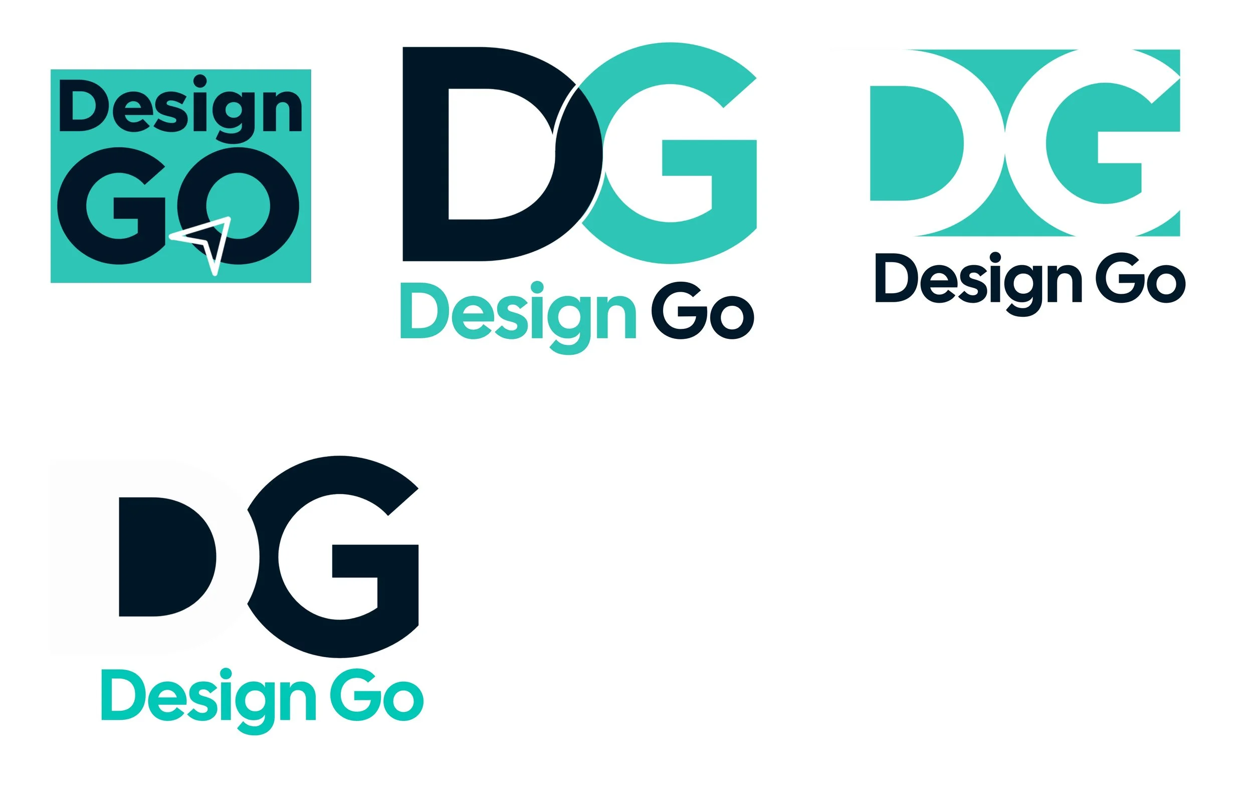 For this first set, I called it “DesignGo” to suggest that the class is a go-to place for creative solutions. Version 1 uses negative space in the word “GO” to give the simple logotype a unique twist. For version 2, I added an arrow to emphasize the idea of forward movement. For version 3, I swapped “Design” for “Agency” to better reflect the broader scope of the class, since not all of the projects are purely design-focused.